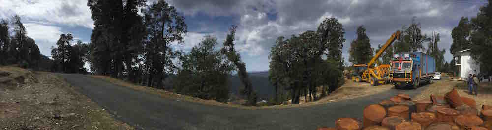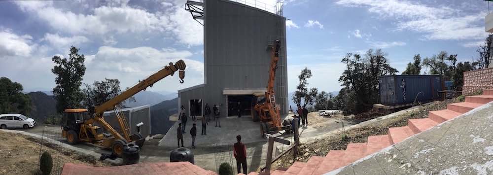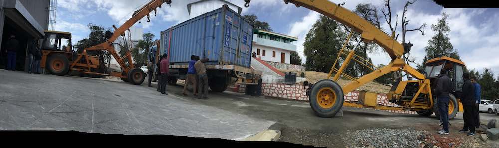 Transportation of the ILMT container (with telescope structure, air bearing and optical corrector) on 2nd of March 2017. With the help of two hydras and one truck, the container has been transported up to the ILMT building from the entrance of the Devasthal site which is about 2 km apart.